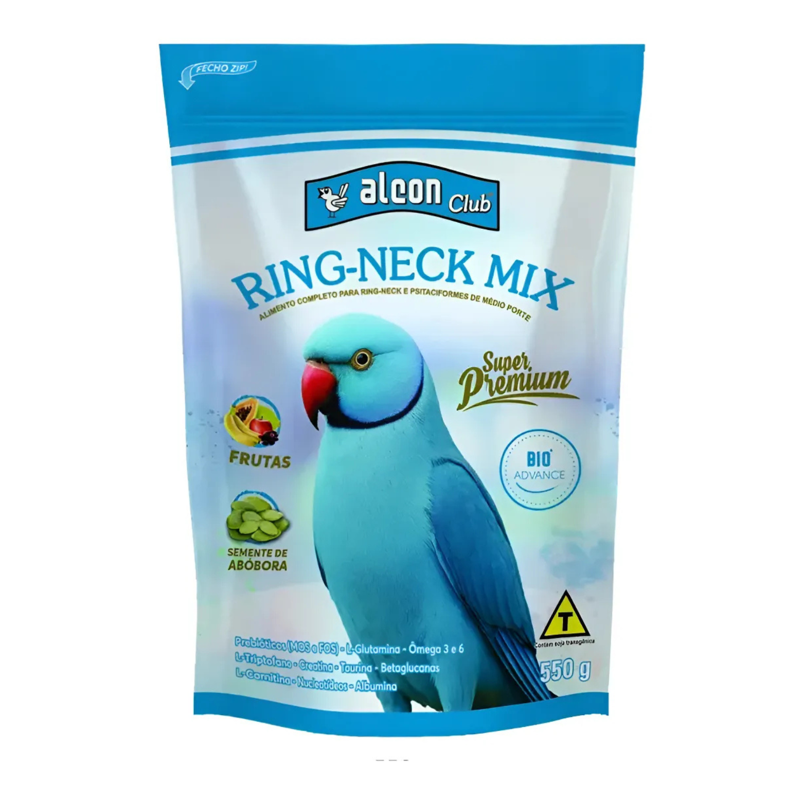 Alcon Club Ring‑Neck Mix 550 g é um alimento extrusado super premium, formulado especificamente para psitacídeos adultos de porte médio, como Ring-Neck, Mustache, Marianinha e Maritaca. Sua composição une grânulos extrusados com frutas desidratadas, sementes de abóbora e ingredientes selecionados, estimulando o comportamento natural de forrageamento.