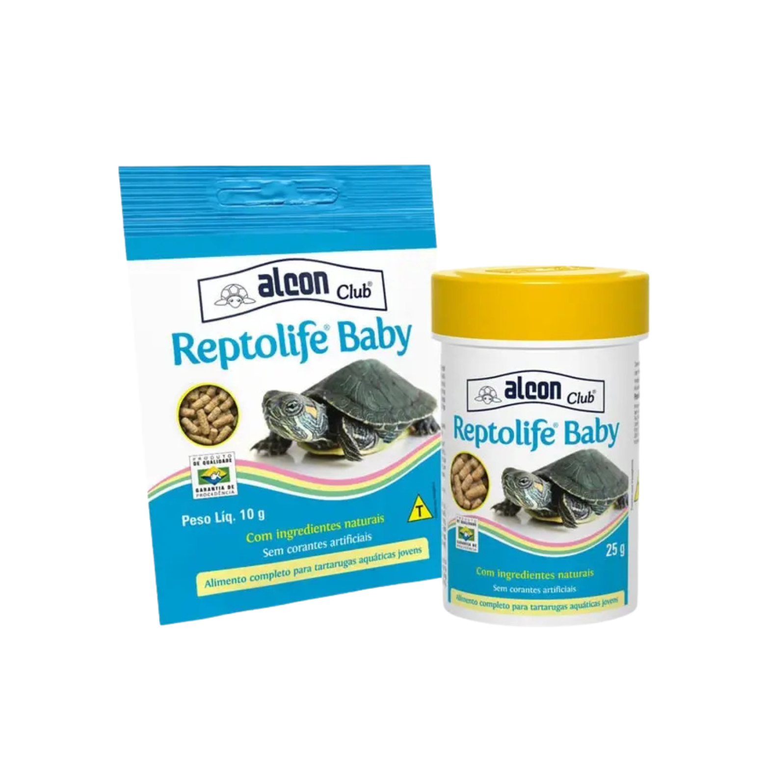 Alcon Reptolife Baby é uma ração extrusada completa e altamente atrativa, especialmente formulada para tartarugas aquáticas jovens (filhotes). Desenvolvida para suprir as necessidades nutricionais dessa fase crítica de crescimento, conta com ingredientes naturais como gammarus e lula, enriquecimento de vitaminas e minerais, e não contém corantes artificiais.