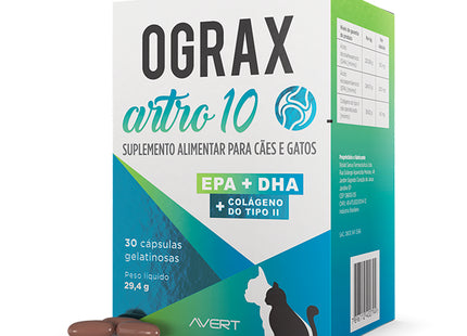 Ograx Artro 10 – Suplemento Articular para Cães e Gatos – 30 Cápsulas