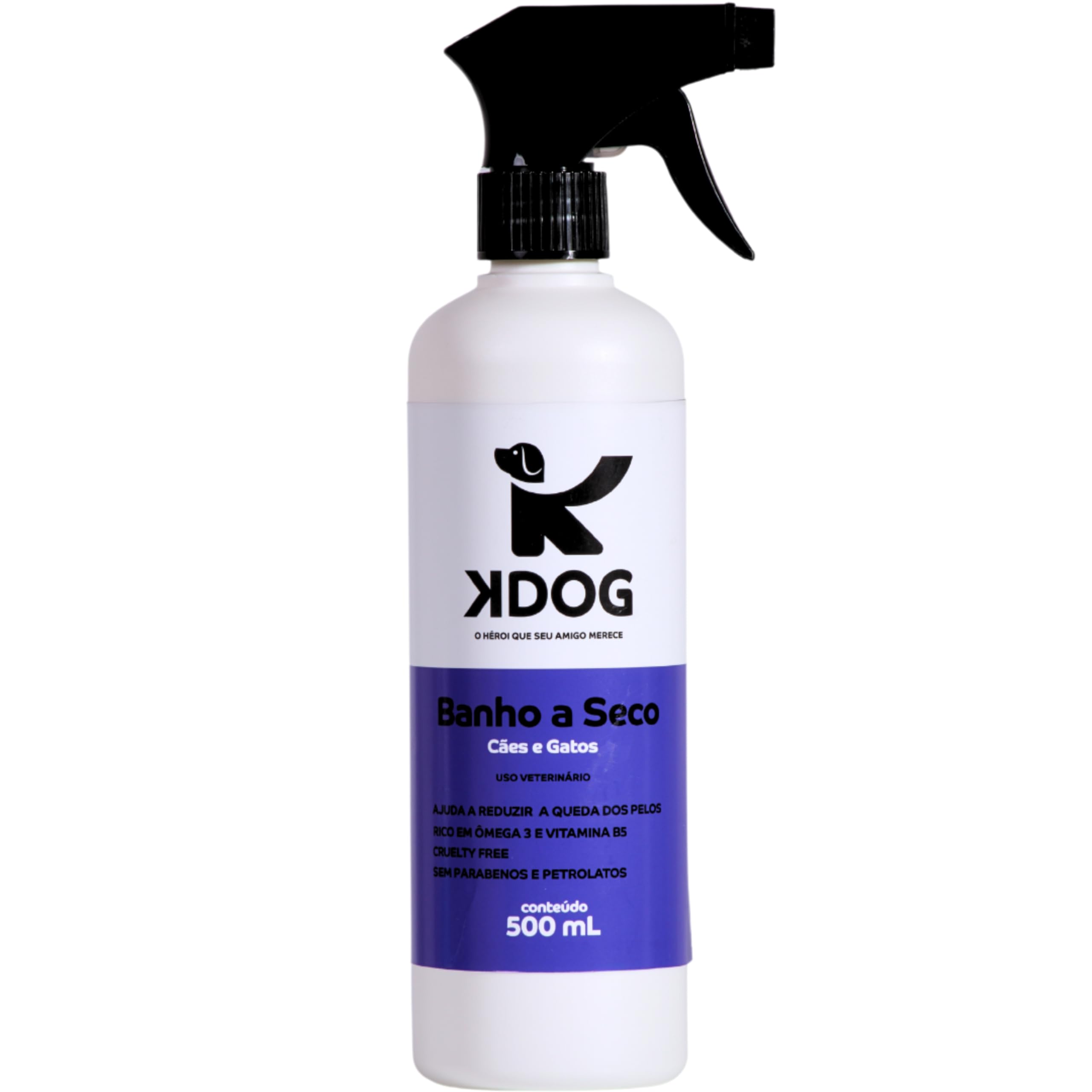 Banho a Seco KDog 500 mL é uma loção de higiene rápida desenvolvida para cães e gatos, ideal para limpeza de pelagem em situações onde o banho com água não é possível ou indicado.