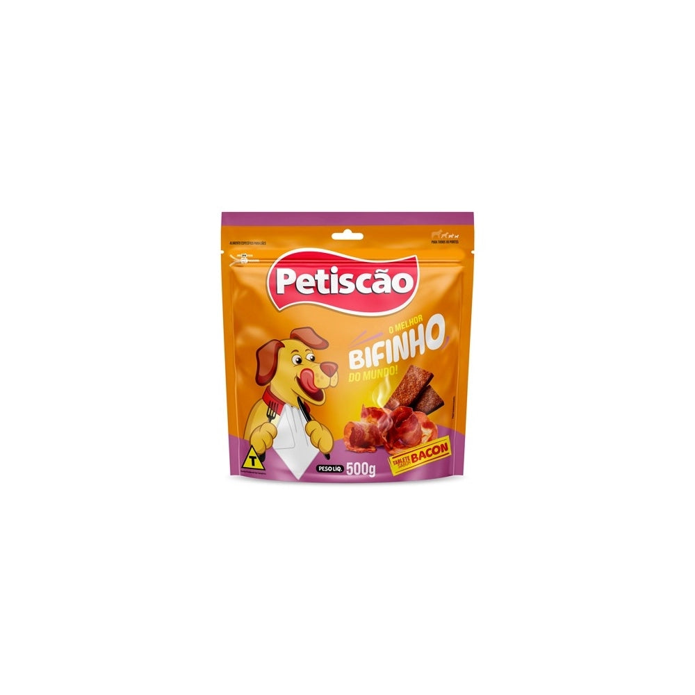 Bifinho Petiscão Tablete – 500 g é um petisco mastigável ideal para cães de todas as raças e tamanhos, disponível nos sabores Frango e Bacon. Sua textura e sabor agrados fazem dele uma excelente opção para recompensa ou entretenimento do seu cão.