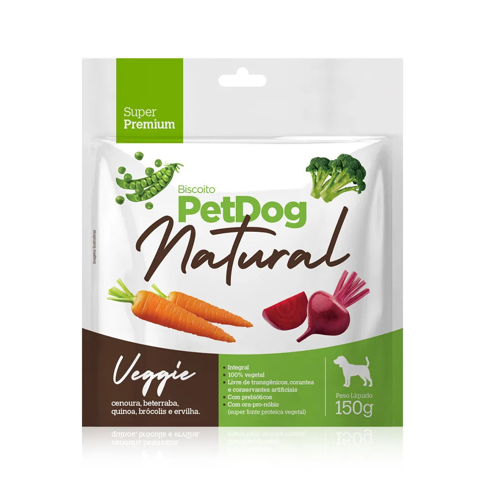 O Biscoito PetDog Natural 150g é um petisco integral, elaborado com ingredientes de alta qualidade como farinha de carne de frango, trigo integral e batata-doce, enriquecido com whey protein, albumina e prebióticos para uma nutrição saudável.