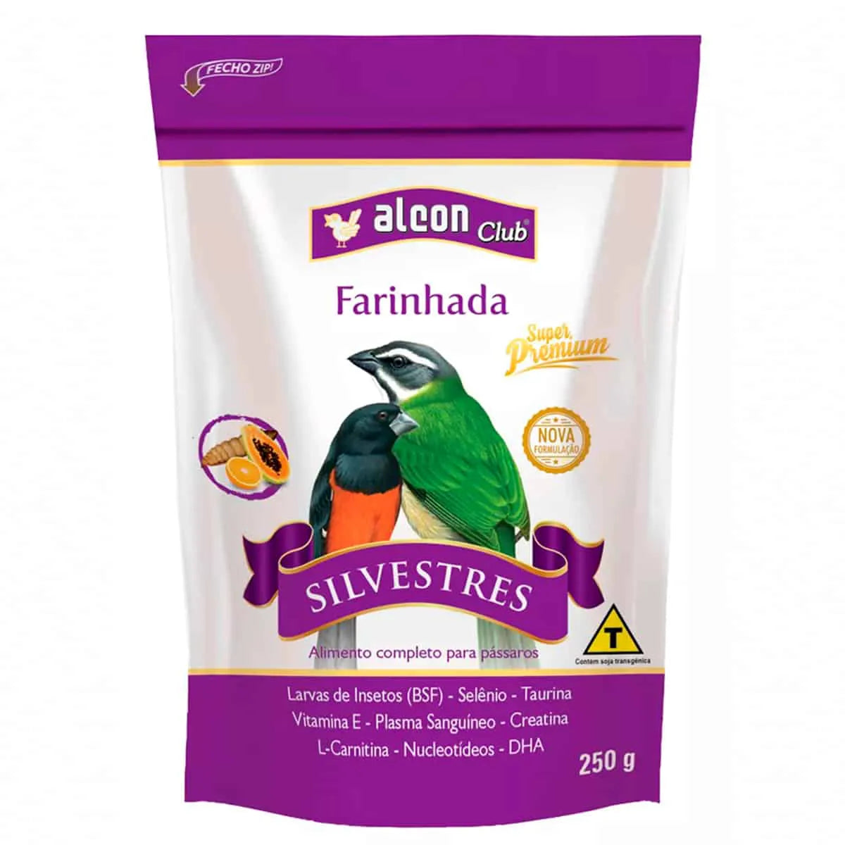 Alcon Club Farinhada Silvestres é um alimento farinhado super premium desenvolvido para pássaros silvestres como Trinca-ferro, Sabiá, Curió, Bicudo, Azulão e Coleiro, indicado especialmente para fases de maior exigência nutricional (reprodução e muda). A fórmula conta com frutas desidratadas e é enriquecida com Vitamina E, DHA (precursor de ômega-3) e minerais orgânicos, além de aditivos funcionais que apoiam o metabolismo e a saúde intestinal.
