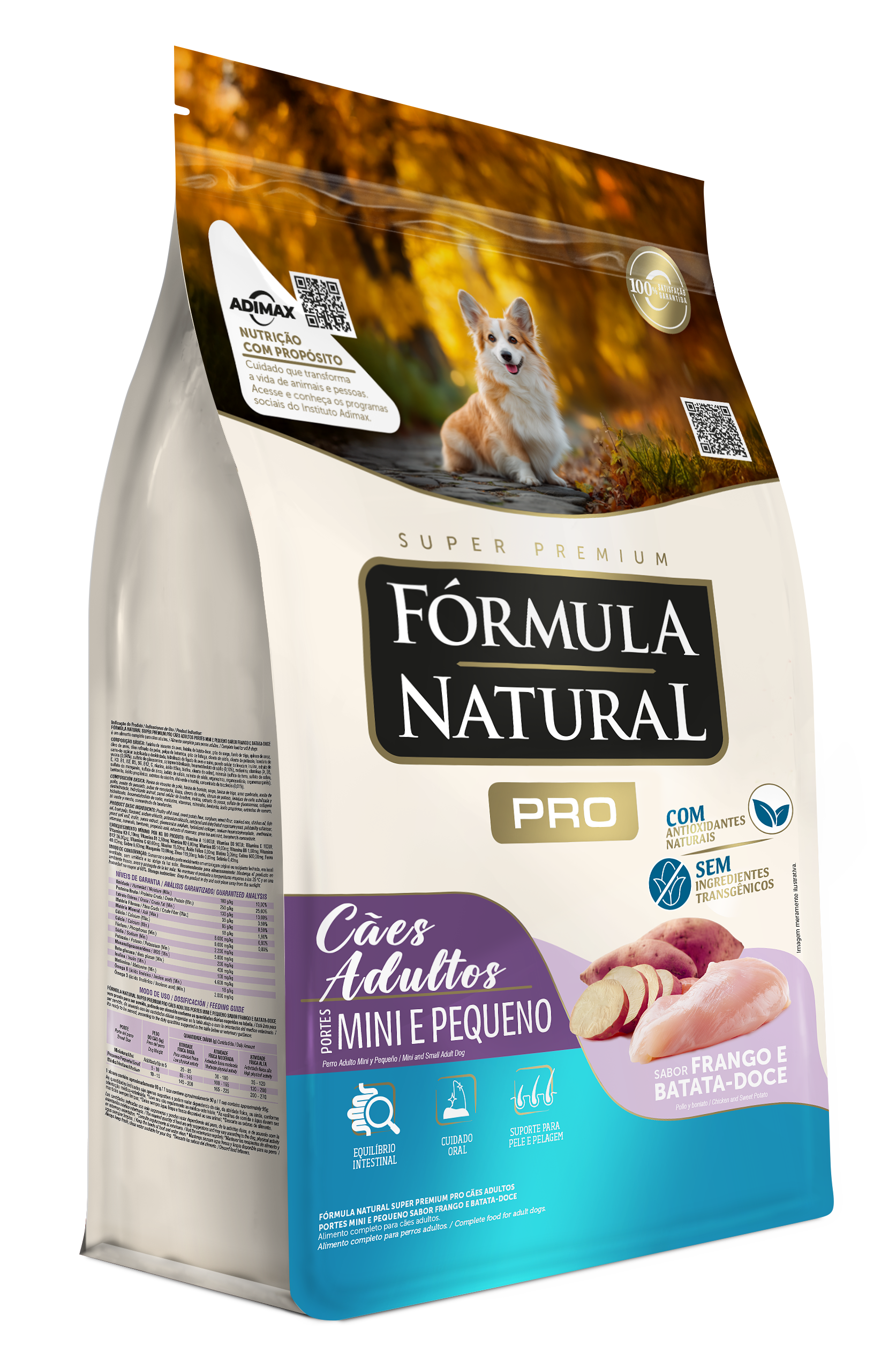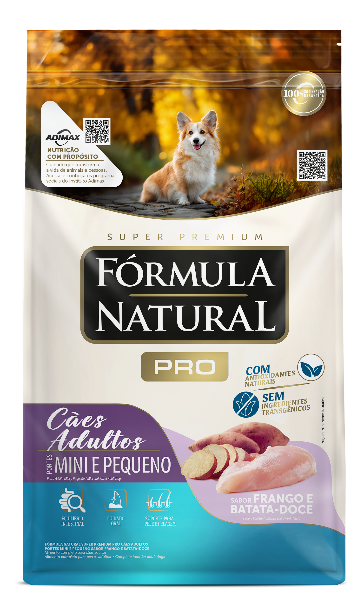 A Fórmula Natural Pró Super Premium com Frango e Batata Doce é especialmente formulada para cães adultos de raças mini e pequenas. Desenvolvida por médicos-veterinários, oferece ingredientes naturais que promovem saúde intestinal, pelagem e cuidados orais.