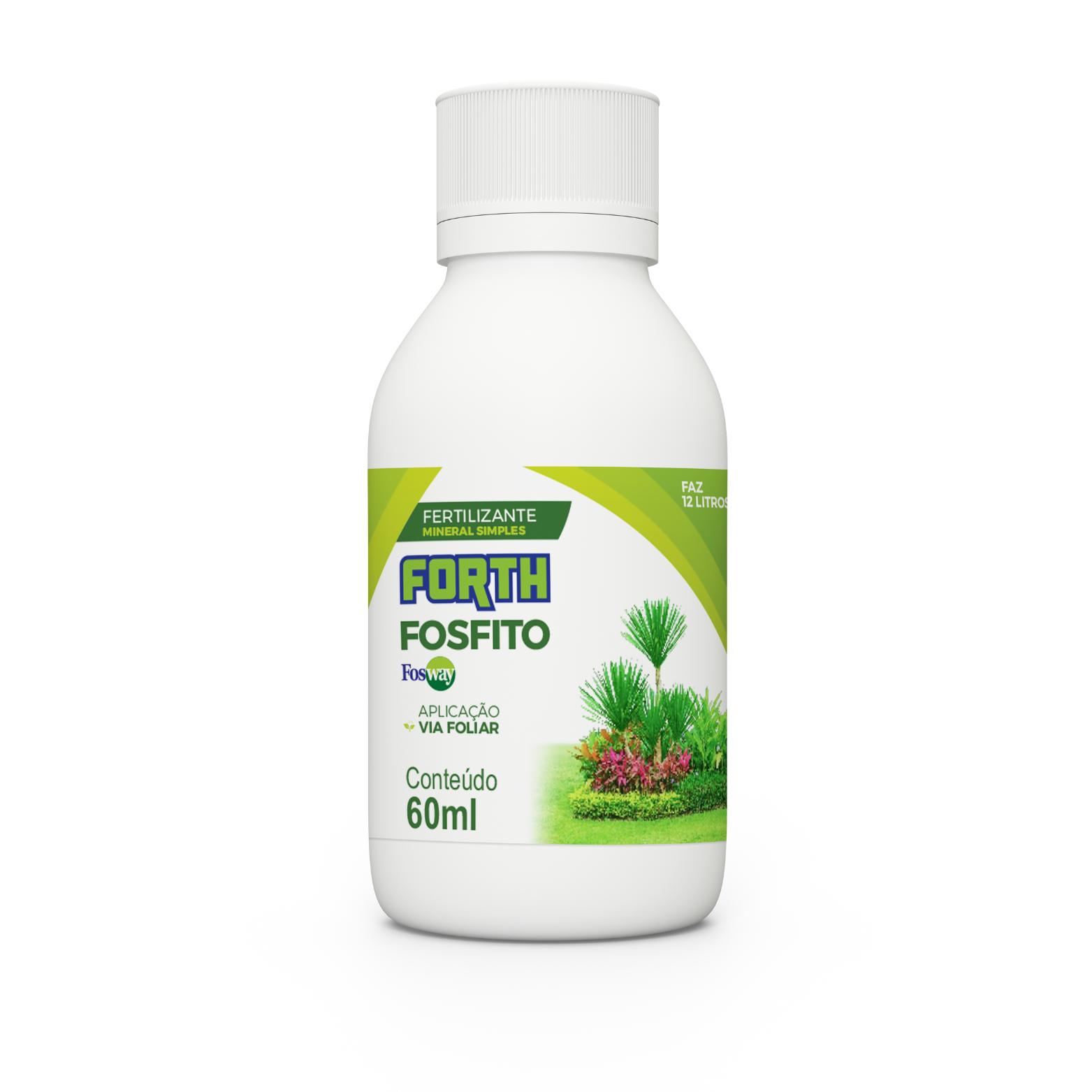 Forth Fosfito 60 mL (Fosway) é um fertilizante líquido concentrado com fosfito de potássio. Atua como fonte rápida de fósforo (P) e potássio (K), fortalecendo a planta contra estresses climáticos e auxiliando na formação de flores e frutos.