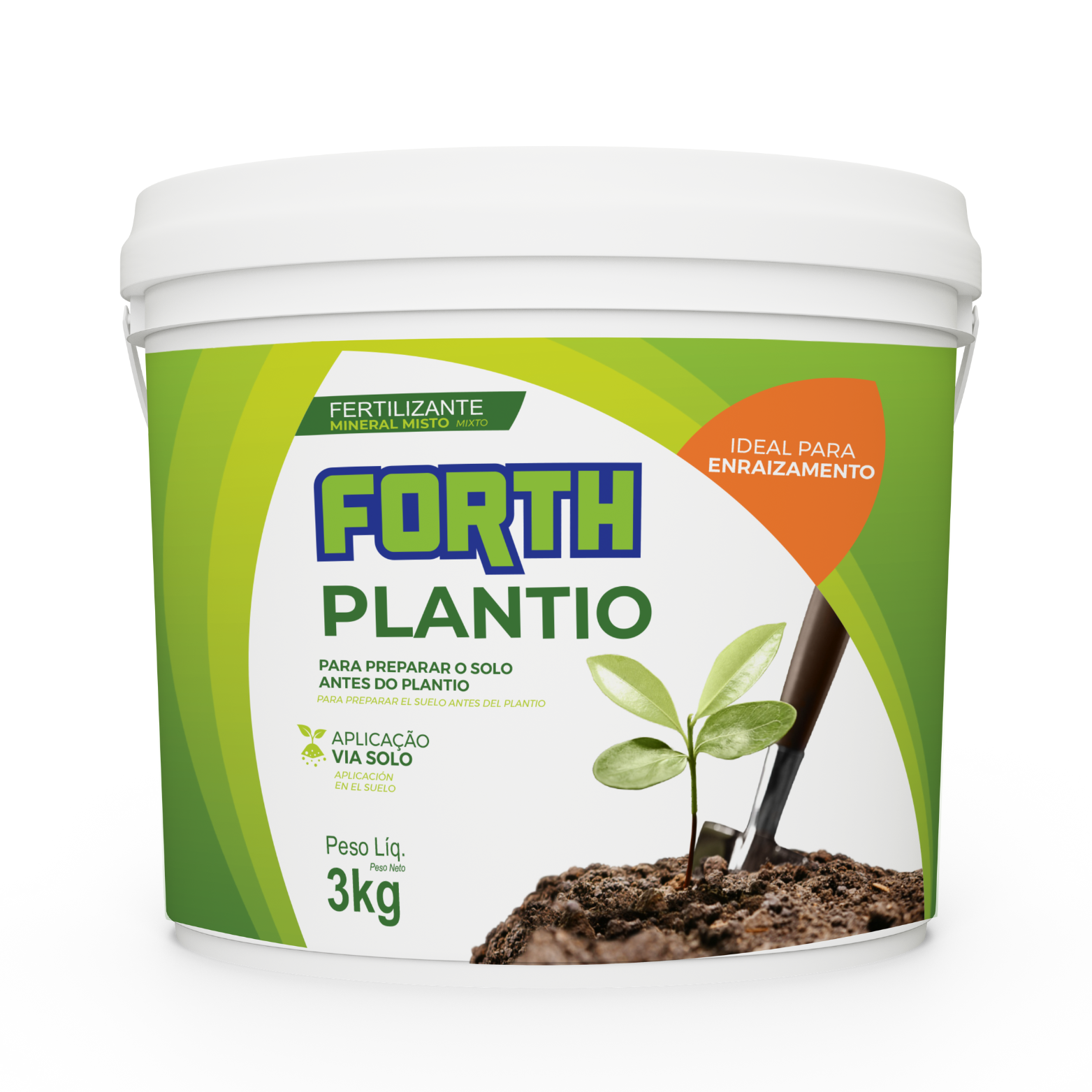 Forth Plantio é um fertilizante e condicionador especialmente formulado para ser usado no momento de plantio de mudas e sementes, com o objetivo de promover enraizamento, estabelecimento rápido e vigor inicial. Está disponível nas versões 400 g e 3 kg.