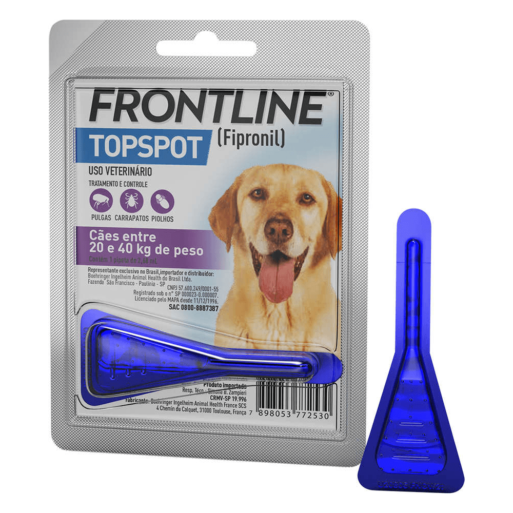 Frontline TopSpot Cães G 20‑40 kg é um medicamento veterinário de uso tópico, em pipeta de dose única, desenvolvido para o controle de infestações por pulgas, carrapatos e piolhos mastigadores em cães nessa faixa de peso.