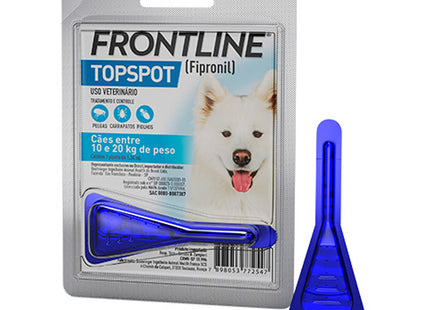 Frontline TopSpot Cães M 10‑20 kg é um medicamento veterinário de uso externo, em formato de pipeta de dose única, indicado para o controle de infestações por pulgas, carrapatos e piolhos mastigadores em cães com peso entre 10 e 20 kg.