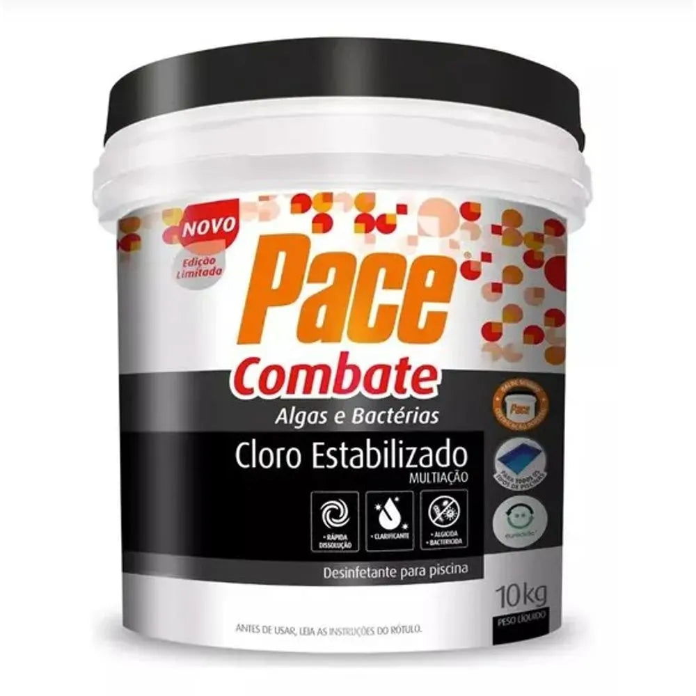 O Cloro Pace Combate HTH 10 Kg é um produto químico granulado estabilizado para piscinas, desenvolvido para manter a água limpa, cristalina e protegida contra algas e bactérias.