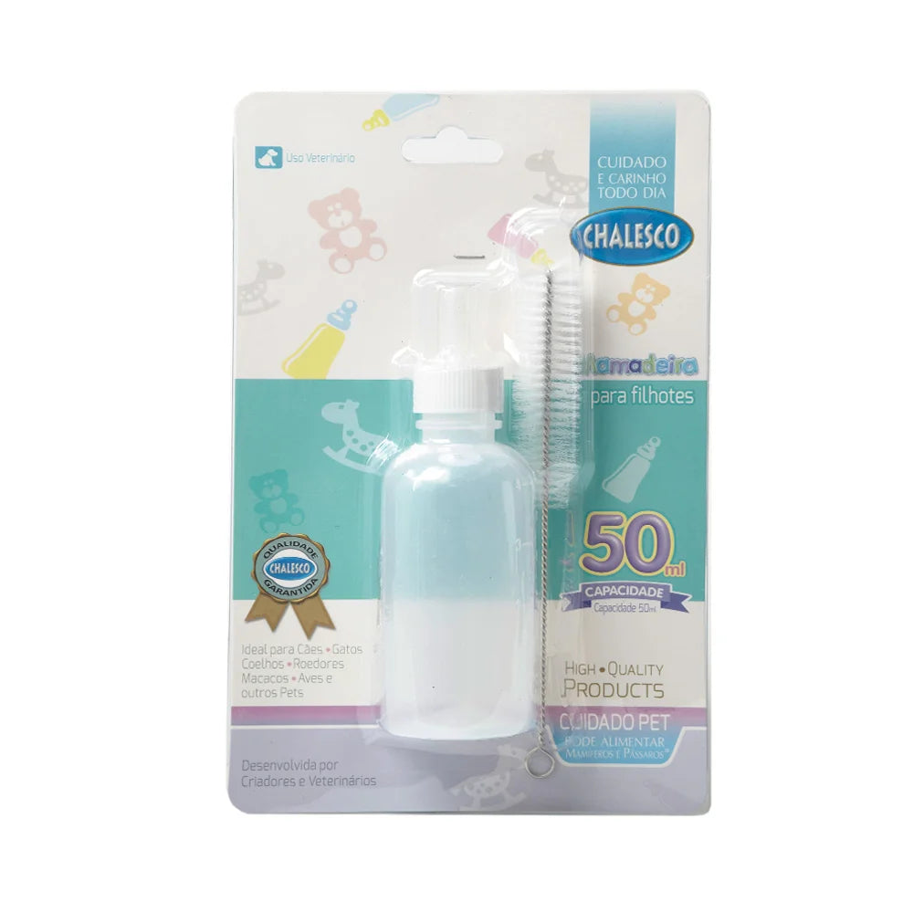 Kit completo desenvolvido para a alimentação segura de filhotes de cães e gatos. Com capacidade de 50 ml, esta mamadeira conta com bico substituível e escova de limpeza, ideal para oferecer conforto e higiene durante a fase de aleitamento ou desmame prematuro.