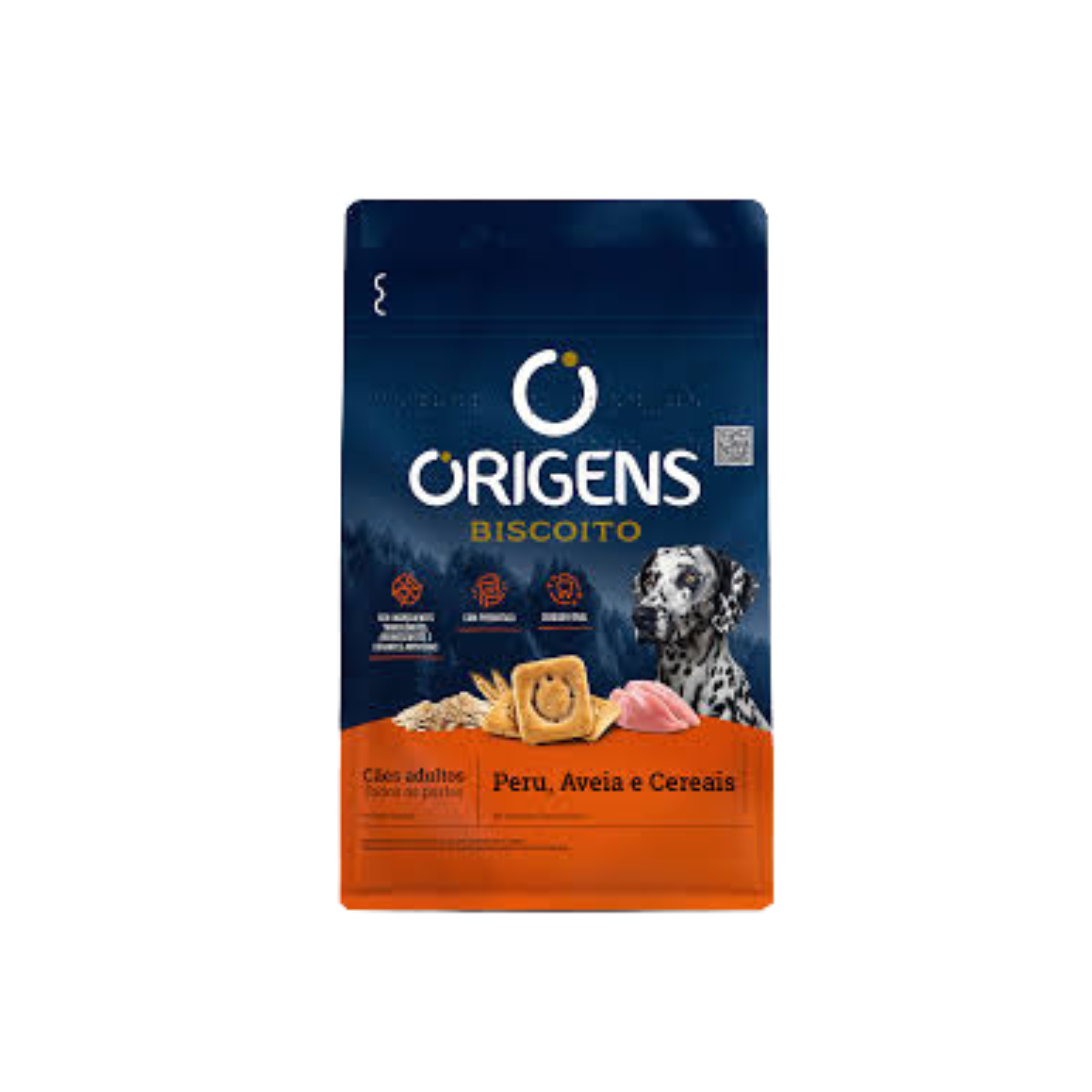 Os Biscoitos Origens para Cães Adultos são petiscos crocantes, formulados com ingredientes como hexametafosfato de sódio para limpeza bucal, condroitina para suporte articular, e prebióticos e fibras para digestão saudável e controle de odor das fezes.