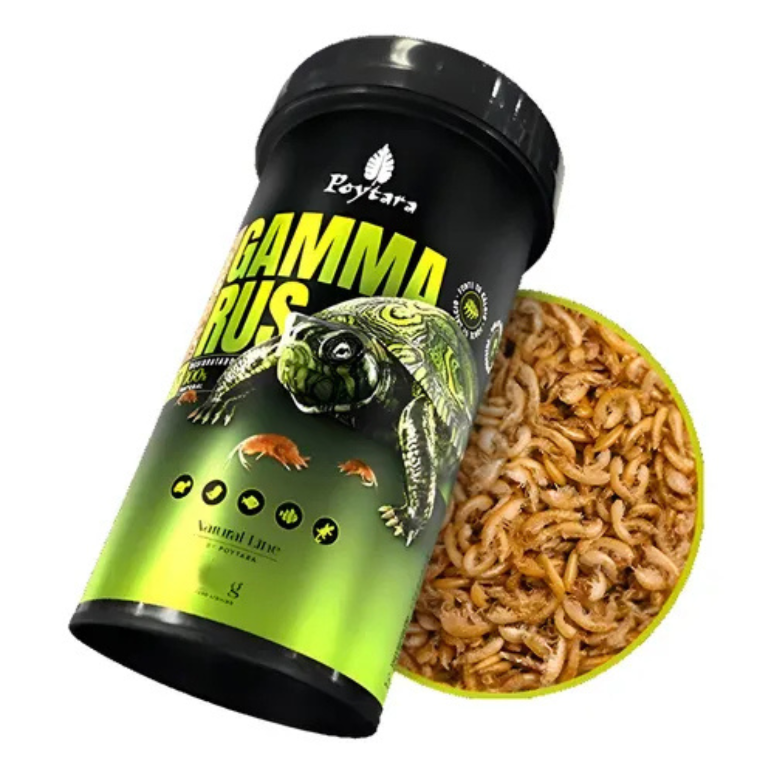 Poytara Gammarus da linha Natural Line é um alimento desidratado de gammarus 100% natural, desenvolvido como complemento nutricional para peixes ornamentais, répteis, quelônios e aves.