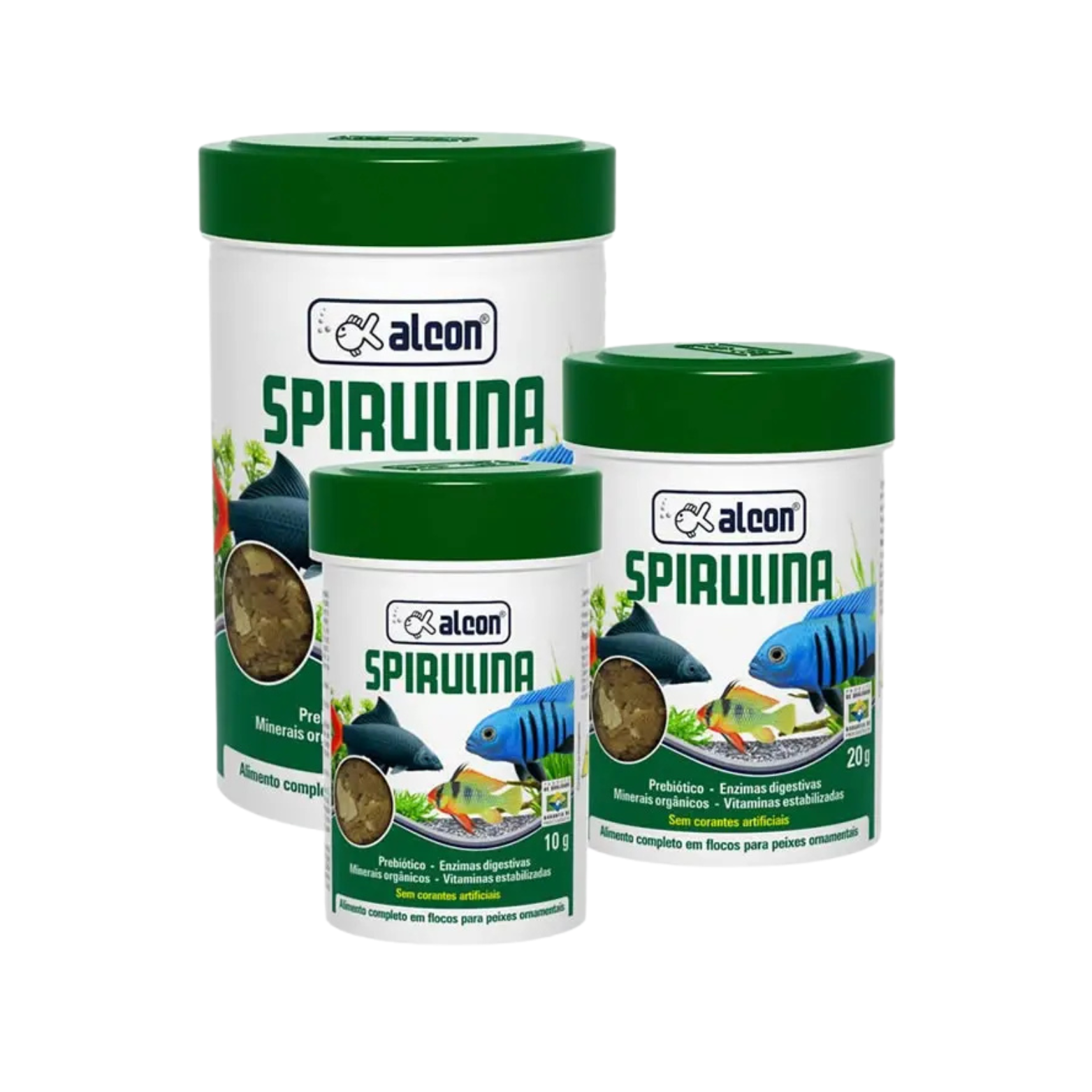 Alcon Spirulina Flakes é uma ração em flocos formulada para peixes ornamentais (tropicais e marinhos), que combina ingredientes naturais selecionados e a inclusão destacada de espirulina para promover nutrição de alto valor e realce de coloração.