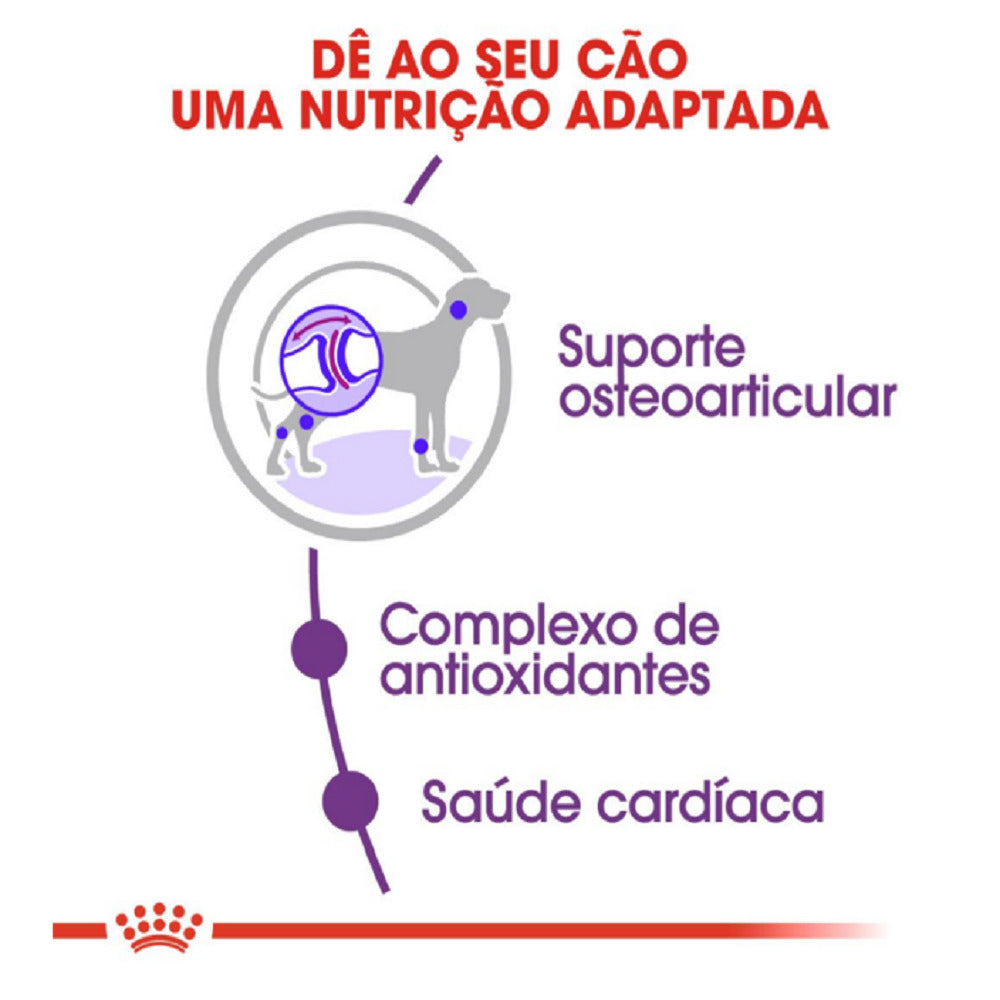 - Manutenção de ossos e articulações: considerando o peso elevado nas raças gigantes, esta fórmula apoia o sistema locomotor para melhor mobilidade.