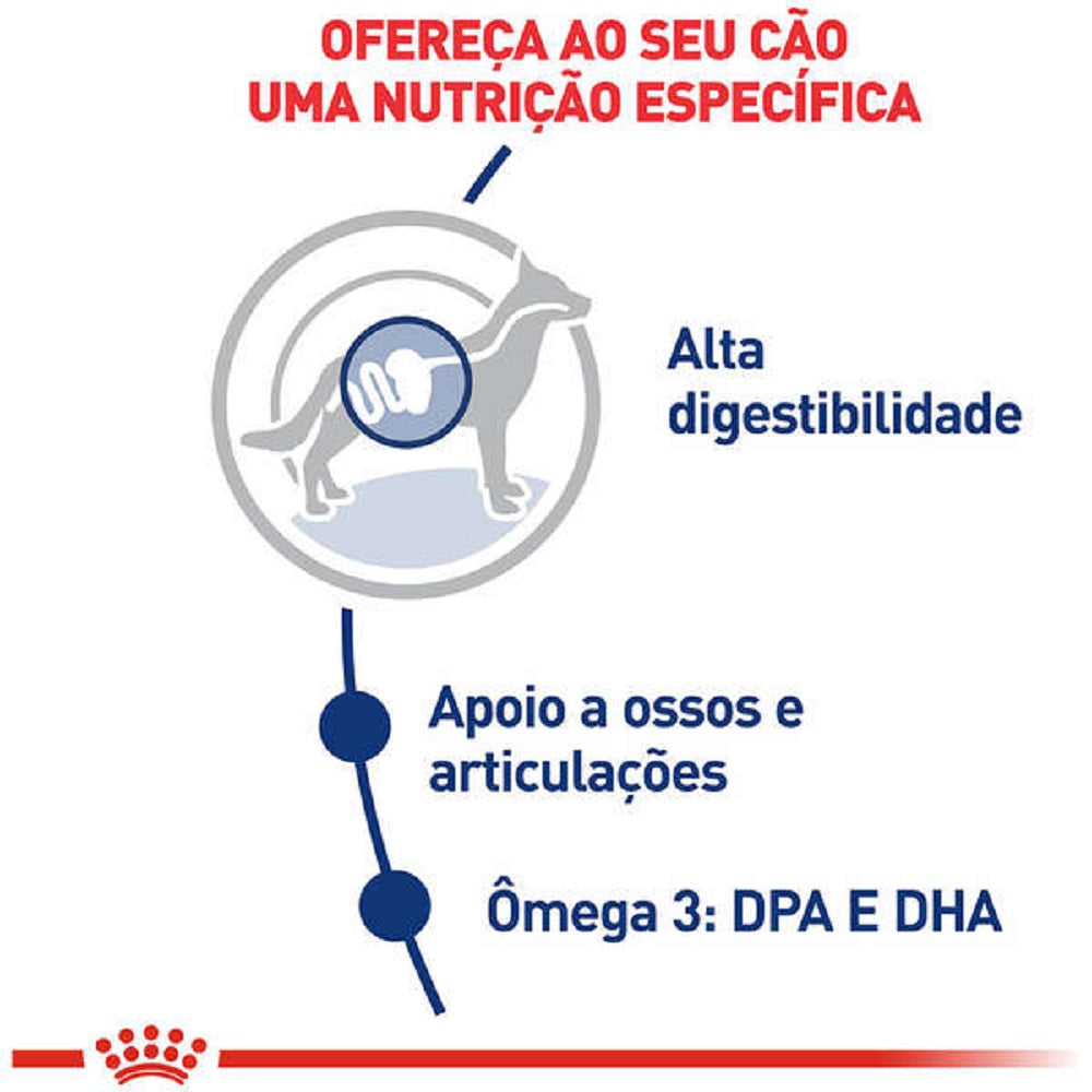 - Suporte a ossos e articulações: desenvolvida para cães de porte grande cujo sistema locomotor está sob maior carga.