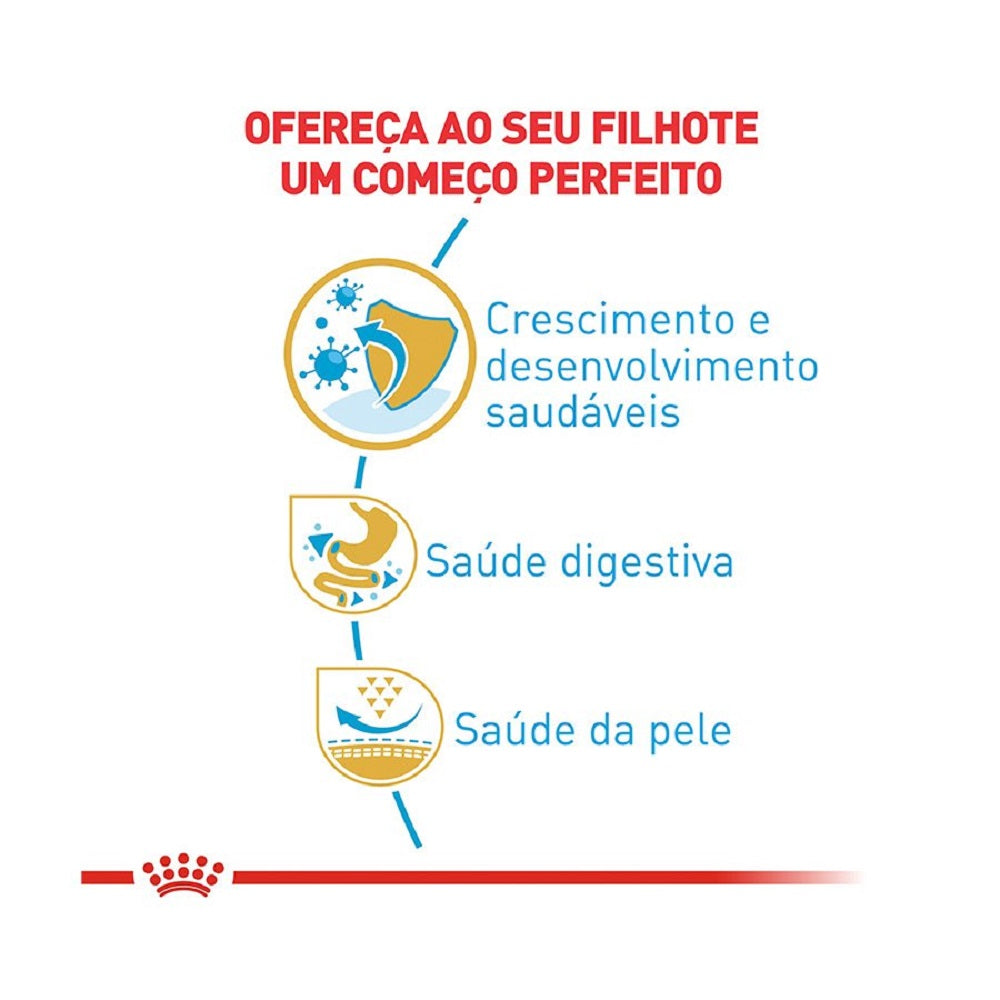 - Croquete especialmente desenhado para a braquicefalia típica da raça – facilita a preensão e mastigação para o filhote.