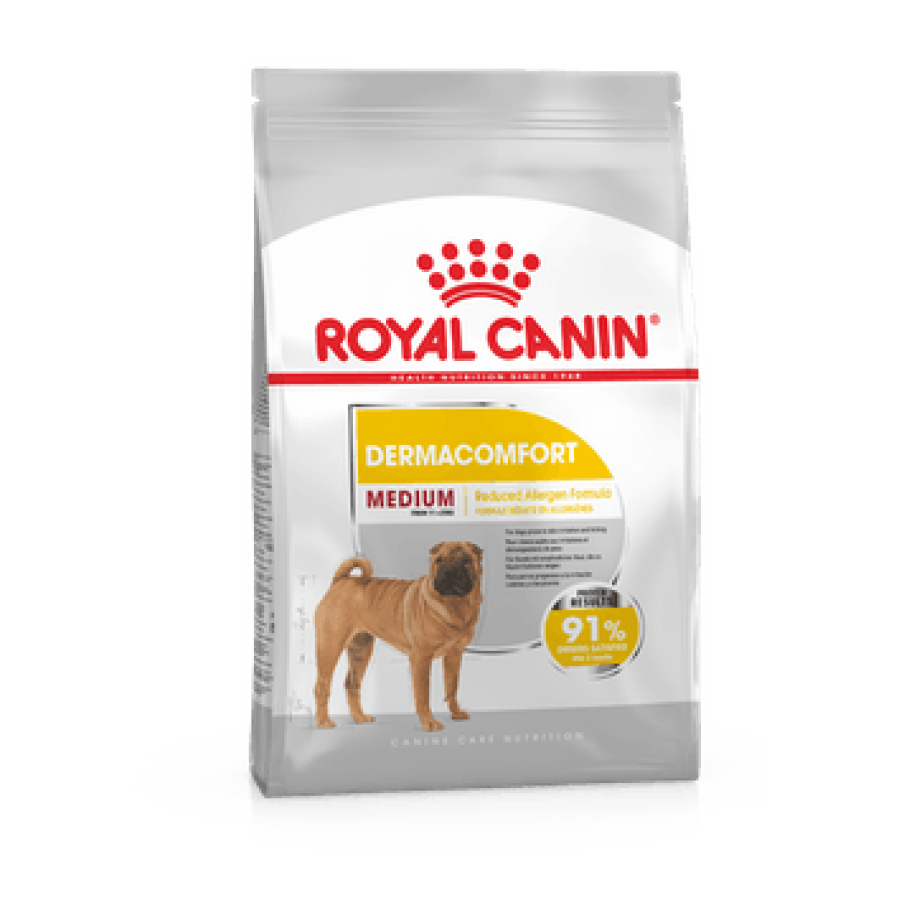 RCCI SHN Med Dermaconfort 2,5 kg é um alimento completo super premium indicado para cães adultos (a partir de 10 meses) de porte médio (11 a 25 kg) que apresentam sensibilidade cutânea, coceiras ou irritações de pele.