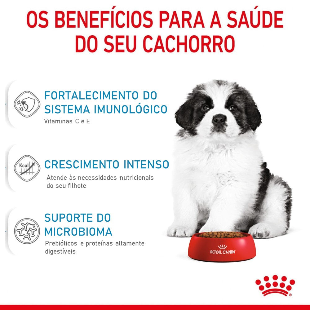 Royal Canin Giant Puppy é um alimento seco completo e equilibrado, desenvolvido especialmente para filhotes de raças gigantes (peso adulto esperado acima de ~45 kg) na fase de crescimento (aproximadamente de 2 a 8 meses de idade).