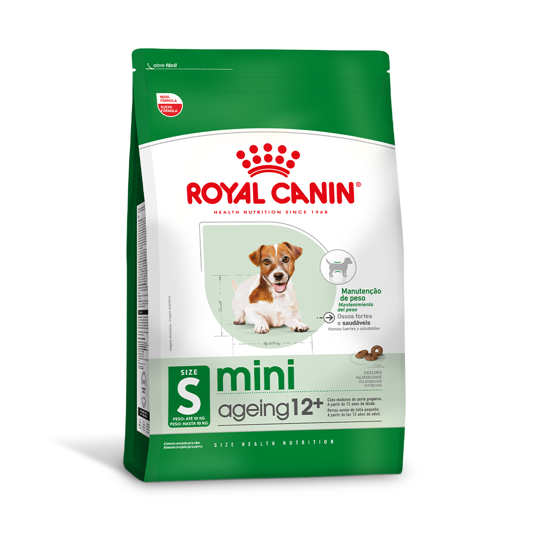 A ração Royal Canin Mini Ageing 12+ é um alimento completo e balanceado, especialmente formulado para cães de porte pequeno (peso adulto estimado até ~10 kg) com idade a partir de 12 anos.