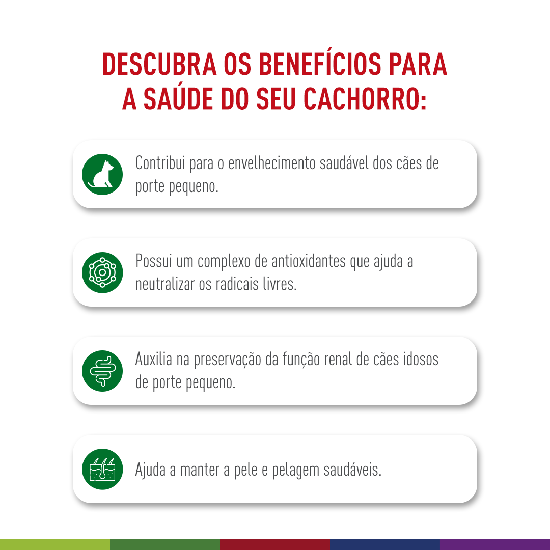 - Croquete pequeno adaptado + fórmula para porte mini: Facilita a mastigação em cães de raças menores, com mandíbulas menores.