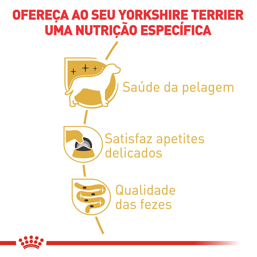 - Formulação desenvolvida especificamente para a raça Yorkshire Terrier, com exigências nutricionais adaptadas ao metabolismo e características desta raça.