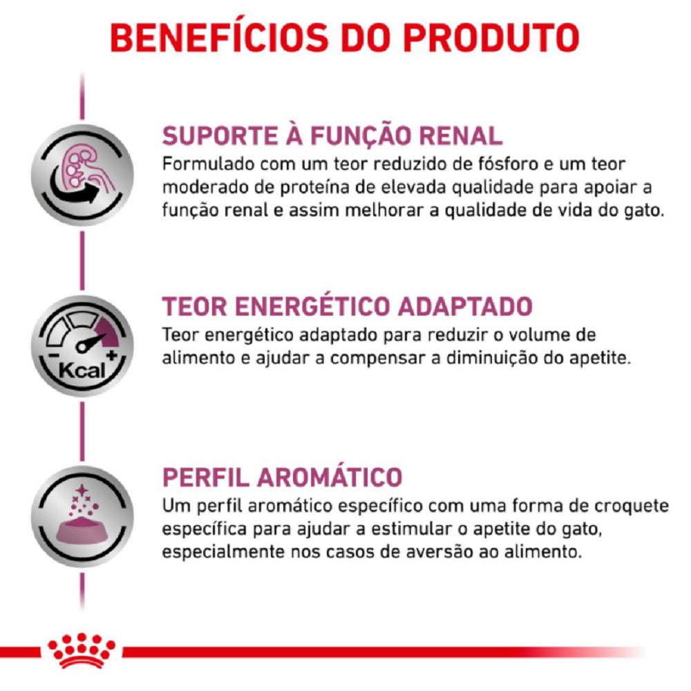 Royal Canin Veterinary Diet Renal Special Feline é um alimento seco coadjuvante, indicado para gatos adultos com doença renal crônica ou necessidade de suporte nutricional da função renal.