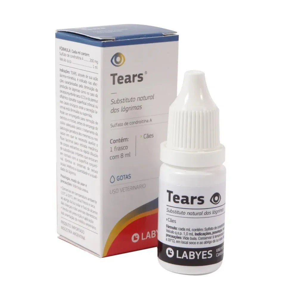 Tears 8 mL é um colírio lubrificante e umectante indicado para cães e gatos, da marca Labyes. Sua fórmula à base de sulfato de condroitina A ajuda a substituir ou complementar a lágrima natural, promovendo hidratação, lubrificação e conforto ocular — especialmente em casos de olhos secos, irritações, ceratoconjuntivite seca, pós‑operação, remoção de secreções ou corpos estranhos.